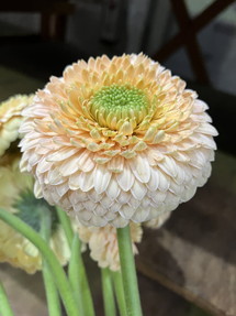 ポンポン咲きで外側が淡く、中心にかけて濃いオレンジのグラデーションが可愛らしい品種です。