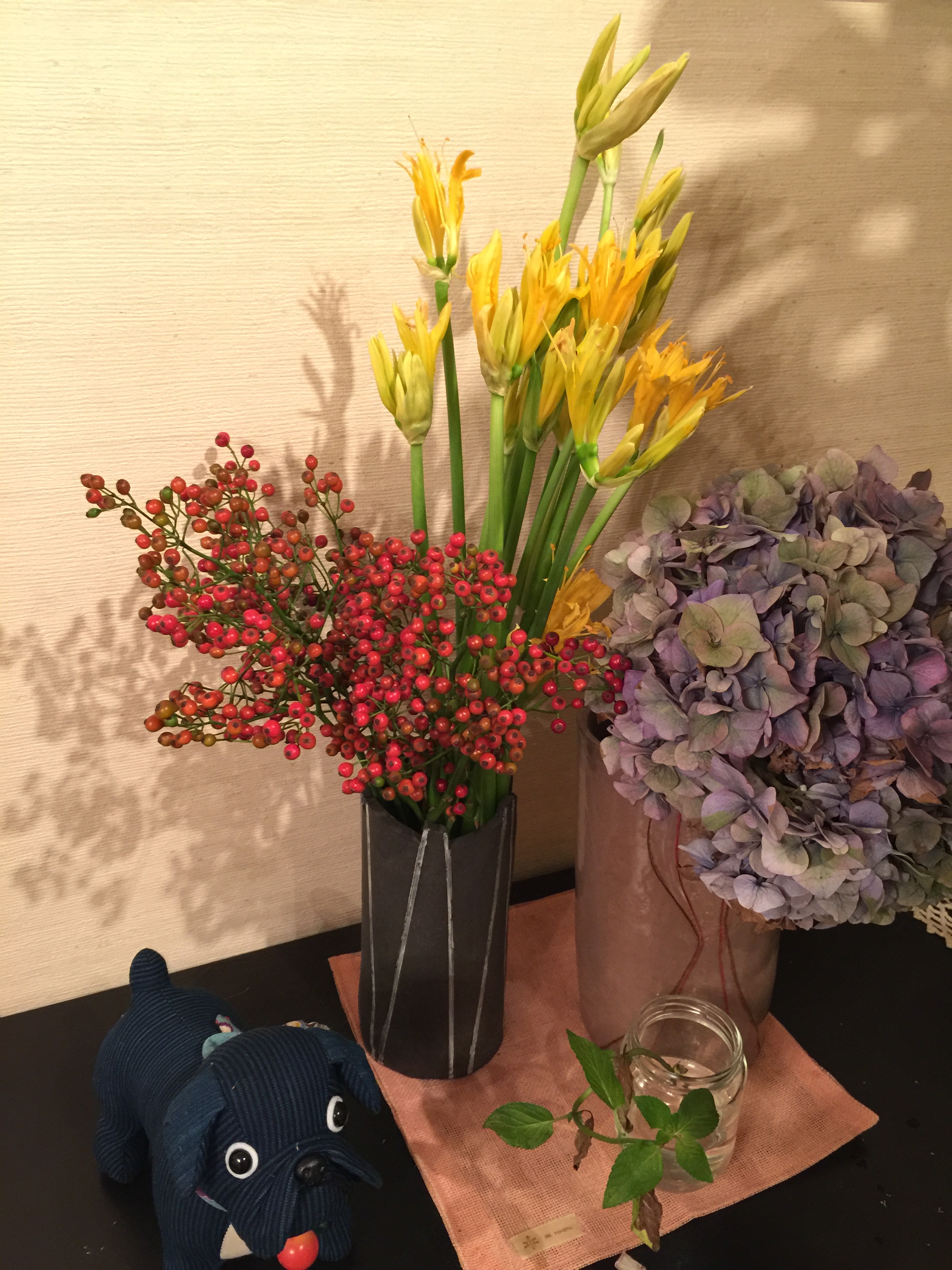 ヒマワリは浅水が良いという理由は、ヒマワリが茎が腐り易い為、水につかっていた部分をどんどん切り戻すため。なので水替えをするごとに水につかっていた部分は切り落として室内の冷房の直接当たらない涼しいところでの管理をすると長く楽しめます。ヒマワリは暑くても大丈夫!と思われがちですが、7,8月の暑さはやっぱり苦手です。ご注意を!