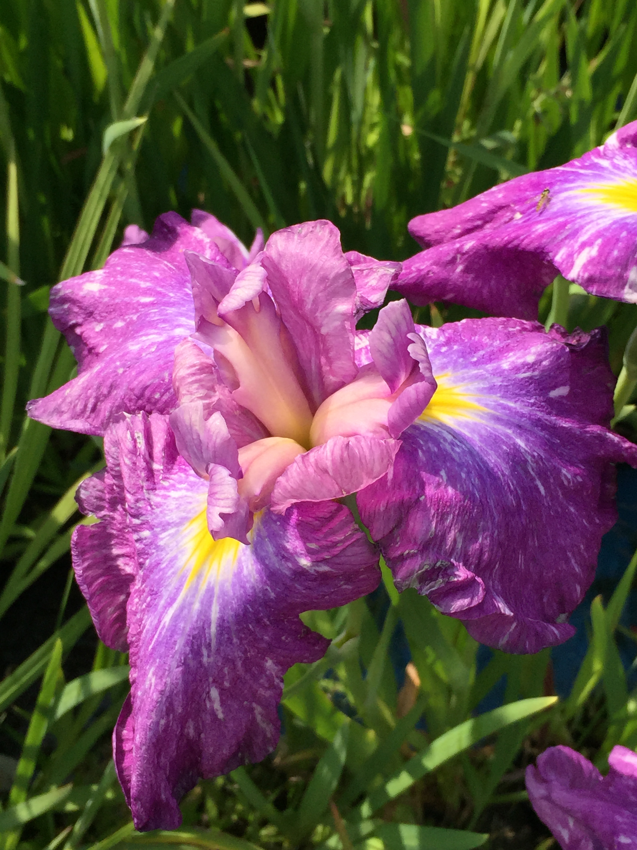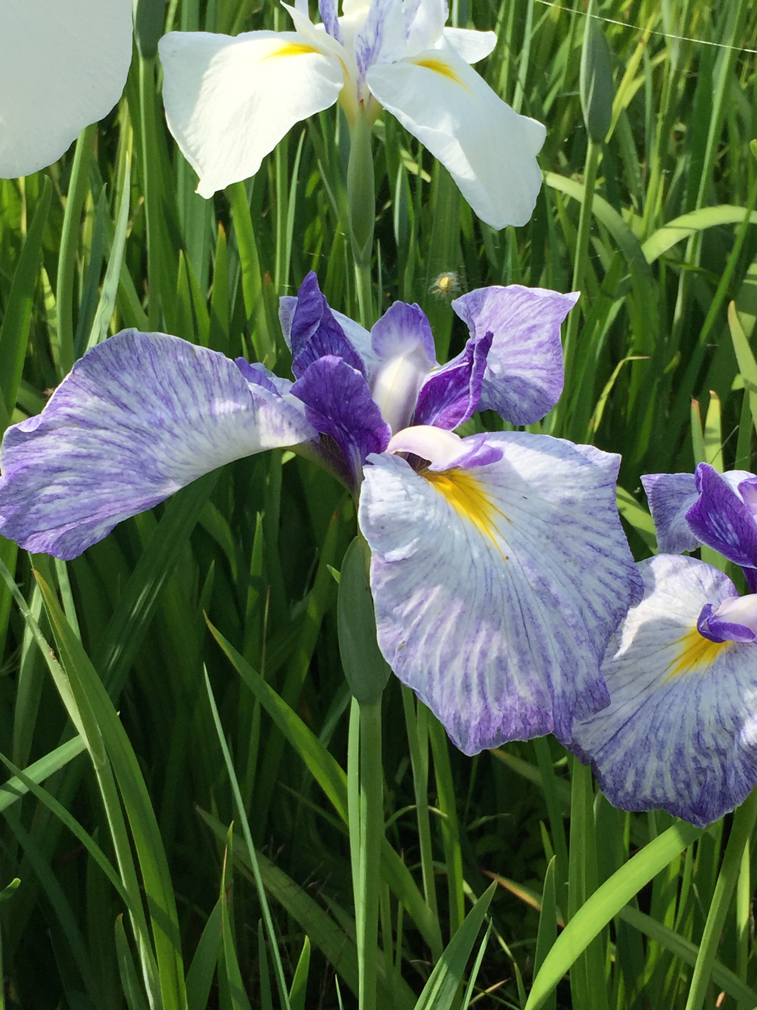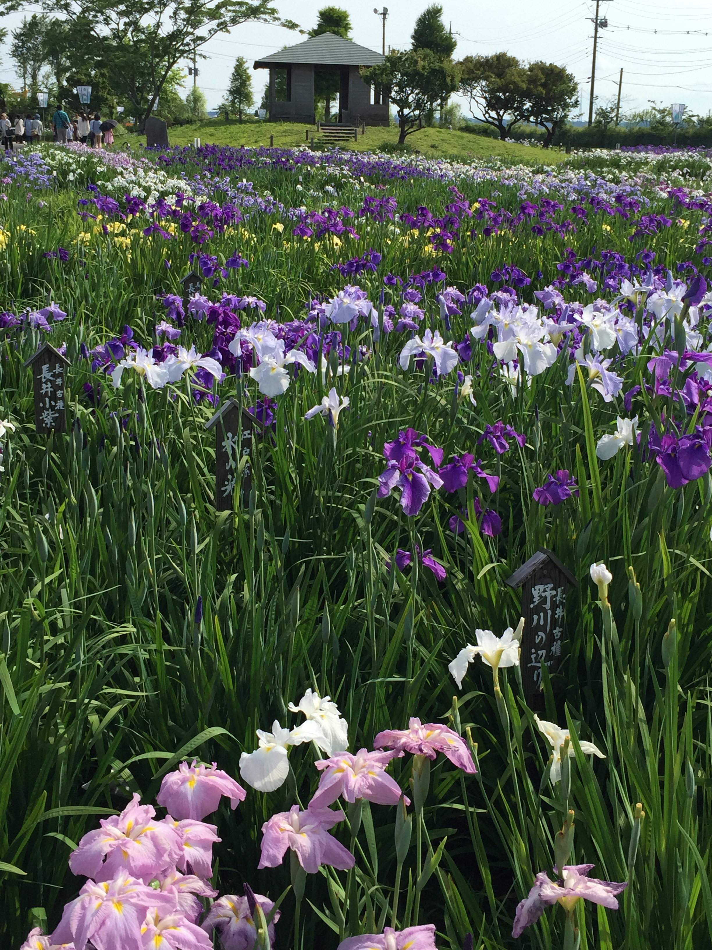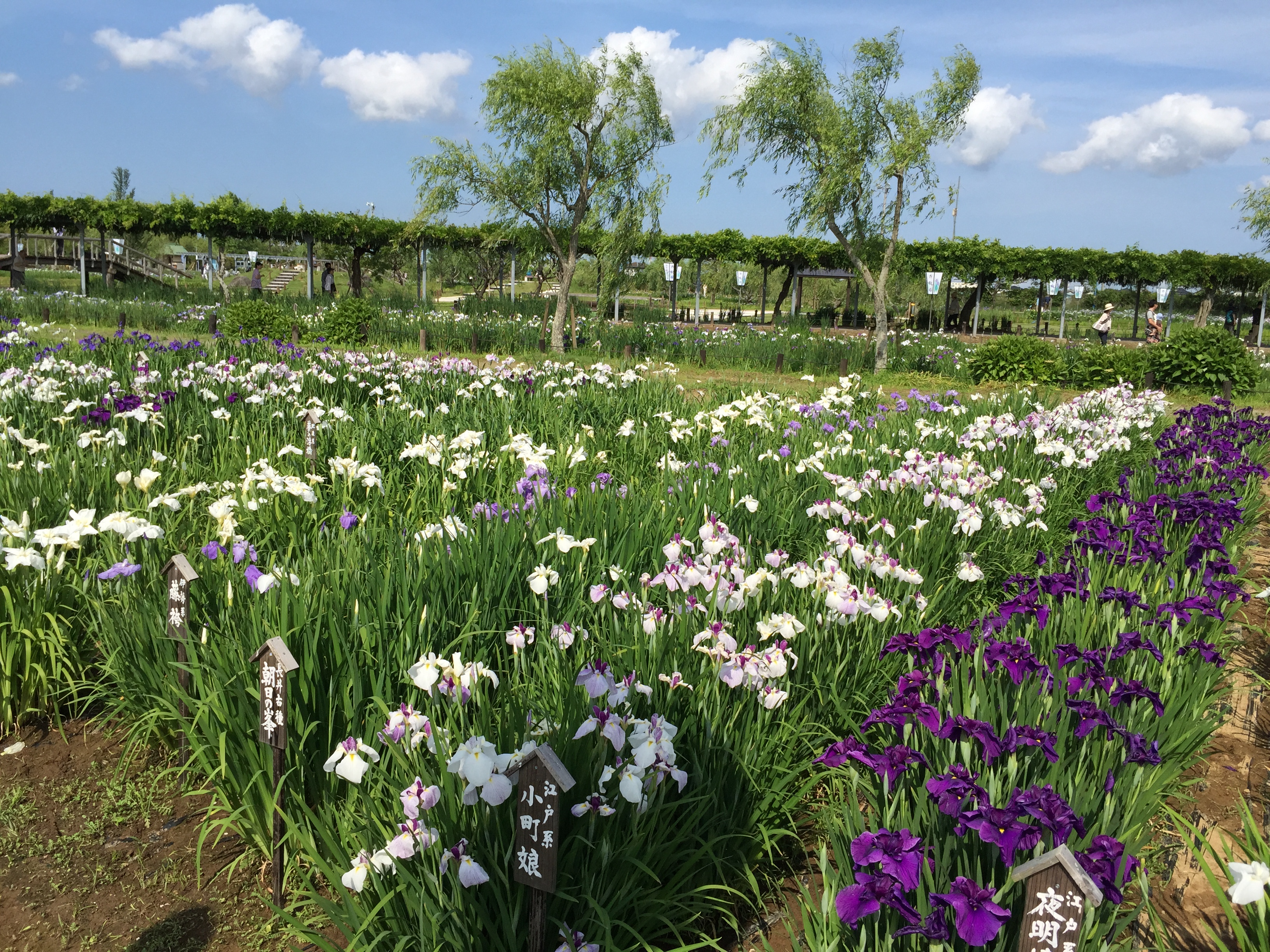 週末、主人に横浜の山手西洋会館のお花を観に行こうと誘おうと思ったのですが、私が言うより先に主人が以前私が水芭蕉を観に行きたいと言っていたことを覚えていて場所を調べたから行こうと言われたのでそちらに行ってきました! でもいってみたら・・・・以前行ったことのある水生植物園でしかも水芭蕉ではなく花菖蒲でした笑。水芭蕉と花菖蒲…似ているもんね。 IMG_1900.JPG とってもイイお天気でした。ていうか暑かった。 IMG_1902.JPG 花は6分咲き。でも、相変わらずアヤメと花菖蒲とカキツバタの区別がつかねェ。見分ける方法は咲く場所が水生か湿地帯か土壌かということと、葉の脈が少し違うらしいということ、花もリップがあるとかないとかで区別がつくらしいのですが、私にはやっぱり良く解らない。派手派手しいのが花菖蒲だろう!!ってことにしてみていました。 IMG_1904.JPG ↑派手なので多分花菖蒲。 IMG_1912.JPG ↑これも多分花菖蒲。 IMG_1909.JPG ↑これはスマートなので多分カキツバタ。 IMG_1903.JPG ↑コレも多分カキツバタ。 IMG_1901.JPG 200万本ちかくの花があるらしいのですが、一株づつチャンと名前が付いています。この名前が流石日本のお花というだけあって和の名前がほとんど。この名前がまた素敵でした。「花月夜」とか「紅小町」とか「袖娘」とか。 でも一番目にとまったのがこのお花。 IMG_1885.JPG ↑ホテイアオイのお花。きれい~♪浮いている葉しか知らんかった。 そんでもう一つ。 IMG_1894.JPG スーパーミユキ。水草のなまえじゃなくてメダカの名前です。ブルーのメダカさんで一匹@3500もしてたのでとても希少なメダカさん。めっちゃくちゃキレイでした♪ 花菖蒲やアイリスはお店でしこたま見ているけど、やっぱり土に植わっている姿はまた格別。たまにはこういった植物園でお散歩するのも気持ちのいいものです♪