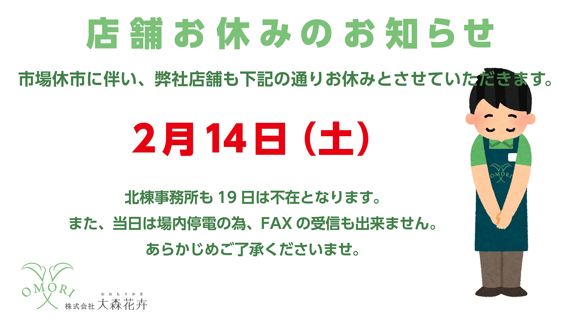 2.14(土)店舗お休みのお知らせ