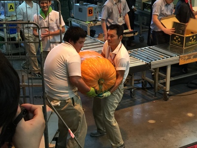 前回、カボチャ大市でした。 今年の化装は・・・ IMG_3113.JPG アナ雪でした♪しかも仮装しているのはみんな男性(笑)。早口で何言ってるのか分からなかったけど、無事今年もカボチャ大市開催されました♪ さて、今年の傾向としましては、昨年に引き続き、大きなカボチャがとても少なかったです。あっという間にセリも終わってしまいました。と、いうのも、8月からの天候不順と悪天候でくさっちゃったりくさっちゃったりくさっちゃったり。なのでセリではかなり争奪戦でした。 IMG_3122.JPG 展開が早いので、持つ方たちの必死っぷりが・・・(笑)。笑っちゃいけないけど笑っちゃいました。 IMG_3123.JPG ↑腰ぬけちゃわないかみている方が心配。 と、いうことで店内もカボチャがいっぱいです!と言いたいところですが、 店内にはキノコがいっぱい・・・・。 IMG_3129.JPG マリオが食べたら即死しそう。 こんな見た目ですが、これでもカボチャです。BIGターバンと言います。毒々しいな、これ!ほかにもこんな色も。 IMG_3131.JPG きの子だけでは飽き足らず、さらにはUFOまでご来店! IMG_3144.JPG ホワイトユーフォーというカボチャです。 宇宙繋がりでギャラクシーオブスター♪ IMG_3146.JPG と、いった感じで面白いものも沢山ですが、オレンジブー、ホワイトブー、フルーツMIXといった定番ももちろんご用意♪ ここ数年、ハロウィンパレードがいたるところで行われるなど、ハロウィンは日本でも結構盛り上がっているイベントです!化装だけでなく、お家もカボチャで装飾しちゃいましょうね♪ 大森花卉もオリジナルカボチャでハロウィン気分♪ IMG_3148.JPG 宇宙と言えば、先日の十五夜のお月さまはとても見事でしたね♪スーパームーンだったとか。私は一日遅れの十六夜をそこらへんのススキ2本とお団子とビールで楽しみました♪