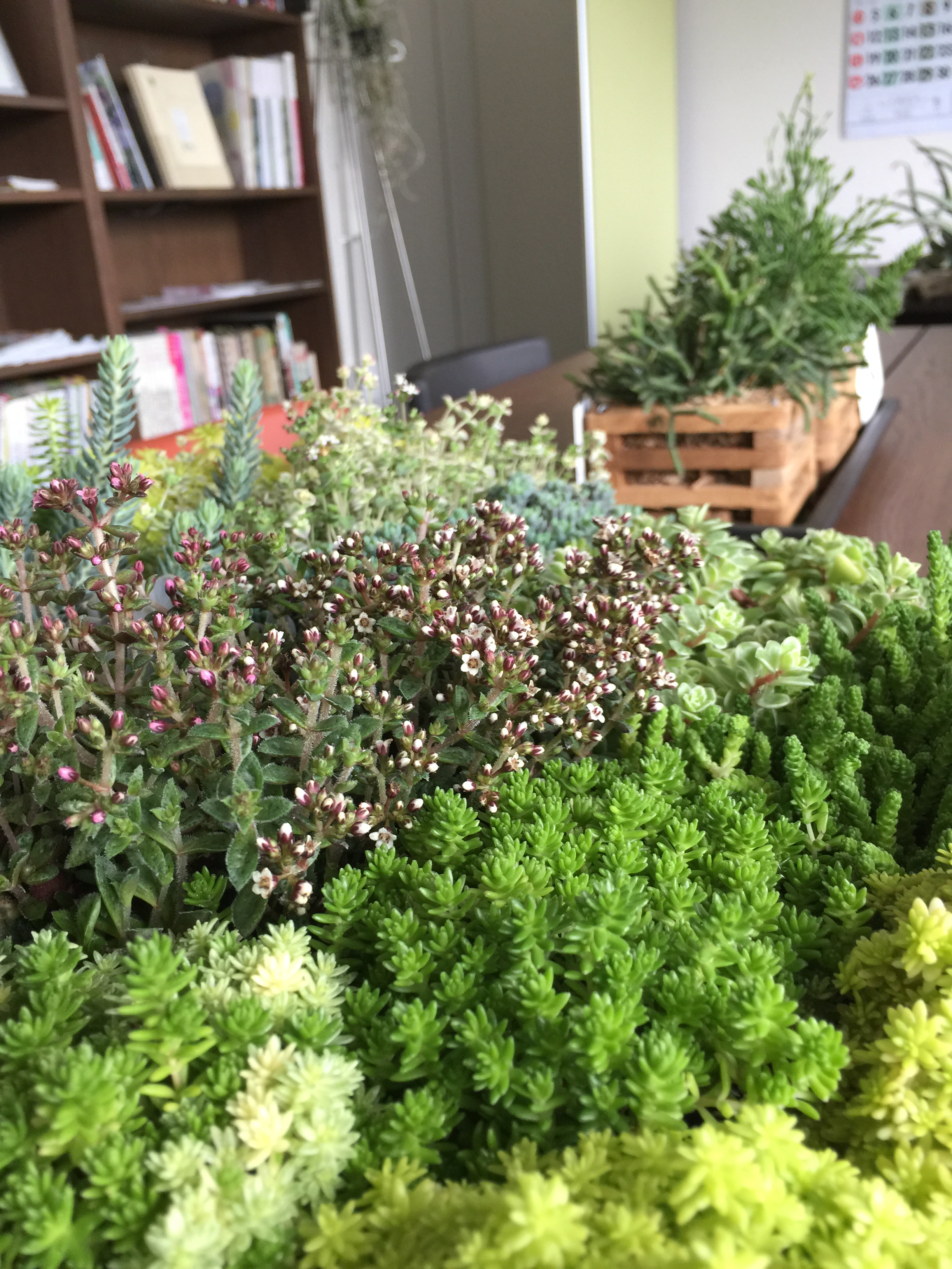 プライベートで植物専門のSNSをやっているのですが、そこでよく耳にする言葉が「植中毒」という言葉と「多肉女子」という言葉。 「多肉女子」。 なんでも「女子」って言葉をつける風潮があるからといって・・・。 わかるわ~♪多肉可愛いもん♪ しかも、女子に限らず、植物好きは変態さんが多い!本当に植物が好きなんだということが伝わってくるマニアっぷり。植物変態と呼ばれることを誇らしくおもっているやつらがSNSにはいっぱいいます。 猛烈な品種数を持つ人、数品種をこよなく愛して毎日その生長と表情をupする人、寄せ植えしている人、空き缶をリメイクして器まで作ってしまう人などなど、想像以上の植物好きの多さに驚きます。しかも、それがこの業界人ではなく、一般の人たちだっていうのもまたうれしいこと。 私なんかは、セダムひとつとってもMIXで入荷があると名前さえわからないものがたくさんありますが、写真とってSNS仲間に聞いてしまえば数分で返信がくるという心強さ。 特に多肉植物にマニアが多いのはなんといってもその見た目の個性や可愛さ、そして品種の多さでしょう。なのでコレクターが多い。 「多肉」と一言で言ってしまうことが多いですが、エケベリア、カランコエ、アロエ、サボテン、ユーフォルビア、コーデックス、ハオルチア、センペルビューム、セネキオなどもひとえに多肉植物とよばれているわけで、セダムひとつとっても約500品種あるといわれています。もう膨大~!楽しくてたまりませんね♪ と、いうことで本日はセダムちゃんを♪ IMG_1801.JPG ミックスで比較的手に入れやすい品種のミックスでしたが、ちまちまかわいい~♪ ↓名前はついていませんでしたがリトルミッシーだとおもいます。柔らかな色のセダムでほんのりピンクがかわいらしい。 IMG_1803.JPG ↓左がたぶんパープルヘイズ、右上が覆輪丸葉万年草、右下はなんだっけ? IMG_1802.JPG 子持ち蓮華も子がビロンビロンしていましたよ IMG_1805.JPG 実は、市場の入り口の植え込みも今は多肉植物なんですよ~ IMG_1535.JPG ↑恋心かしら?このぷにぷに大好きです♪私もベランダ出るたび触ってしまいます。んで、ぽろっと壊れてしまう・・・。 赤いドラゴンズブラッドも素敵です。 IMG_1537.JPG んなわけで、みなさんも多肉女子、植中毒者になってみませんか?