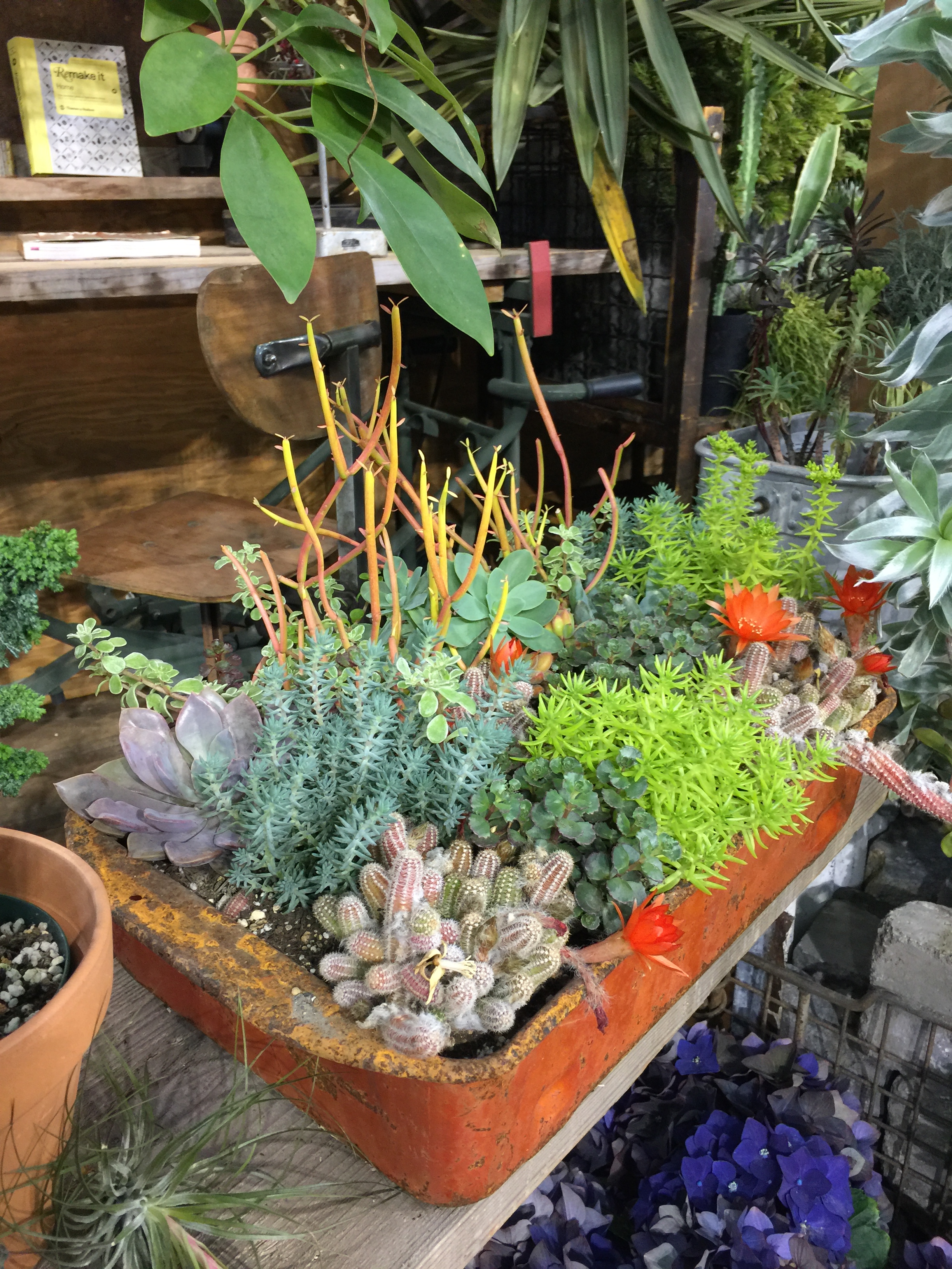まずは! 先週の土日に開催されていたフラワードリーム2017に今年も行ってきました。 毎年思うけど、出品している皆さんはすごいなぁって思います。市場にお花があるときよりも花がより一層きれいに見える。お花屋さんはお花を美しく魅せる魔法使いですね♪ なかでも度肝を抜かれたのが、鉢植えと生花を合体させた作品でした。 IMG_9843.JPG アガベに花!? どうなっているんでしょう。そこまでみれませんでした。 ↓「akogareno hana ni narimashita」(憧れの花になりました)というサブタイトルが。そのタイトルどおり、バラの苗にバラ咲きのエケベリア。 すごく素敵。 IMG_9695.JPG ↓サンセベリアもプロテアとエアープランツといっしょ♪かっこいいなぁ! IMG_9841.JPG グロリオサがぁ!きらきらしていてまるで蝶が舞っているようでした~ IMG_9718.JPG ↓実を言うと一番インパクトを受けました! 福島のアンスリウムのブースでは生産者さんのおじさんたちが手に育てた花を抱えていました。 IMG_9850.JPG ↓多肉植物が水に浮かんでいるようで可愛い♪ IMG_9751.JPG ↓こういう花かご、もらいたい♪ IMG_9762.JPG と、いうようにここへくると今良く使われているお花の流行がひとめでわかるし、お花がどんな使われ方をしているのかも知ることができるのでとても楽しく勉強させていただきました。弊社で販売している宿根スイートピーのブルーフレグランスや最近力を入れているエアープランツや多肉植物などが使われている姿を見るとうれしくなっちゃいました。 また、有名な方たちの作品がこれだけ一斉に拝見することはそうそうないですから、とても貴重な経験になりました。 さて、そんなこんなでフラワードリーム2017が終了しましたが、一般客としていった感想は少々マンネリ化してるようにも思いました。あたらしいイベントとかあったらもっと楽しいのにな~。趣味の園芸ヘビーユーザーとしてはみかみまさしに会えなかったのが残念(笑)。 そんなこんなでフラワードリームが終わり、本日は日常に戻った市場でしたが、かわいい千日紅を見つけましたよ♪ 千日紅<グリム> IMG_9873.JPG 白でもない、グリーンぽいアイボリーな千日紅です。とてもやさしい印象の千日紅。そんなに主張が強いお花ではないのでナチュラルテイストのお花との相性がとてもよさそうです! IMG_9869.JPG 千日紅は赤(ストロベリーフィールド)が代表的ですが、実はとてもたくさんの色があって楽しい植物。一緒にあわせるお花にぴったりのカラーを見つけてください♪