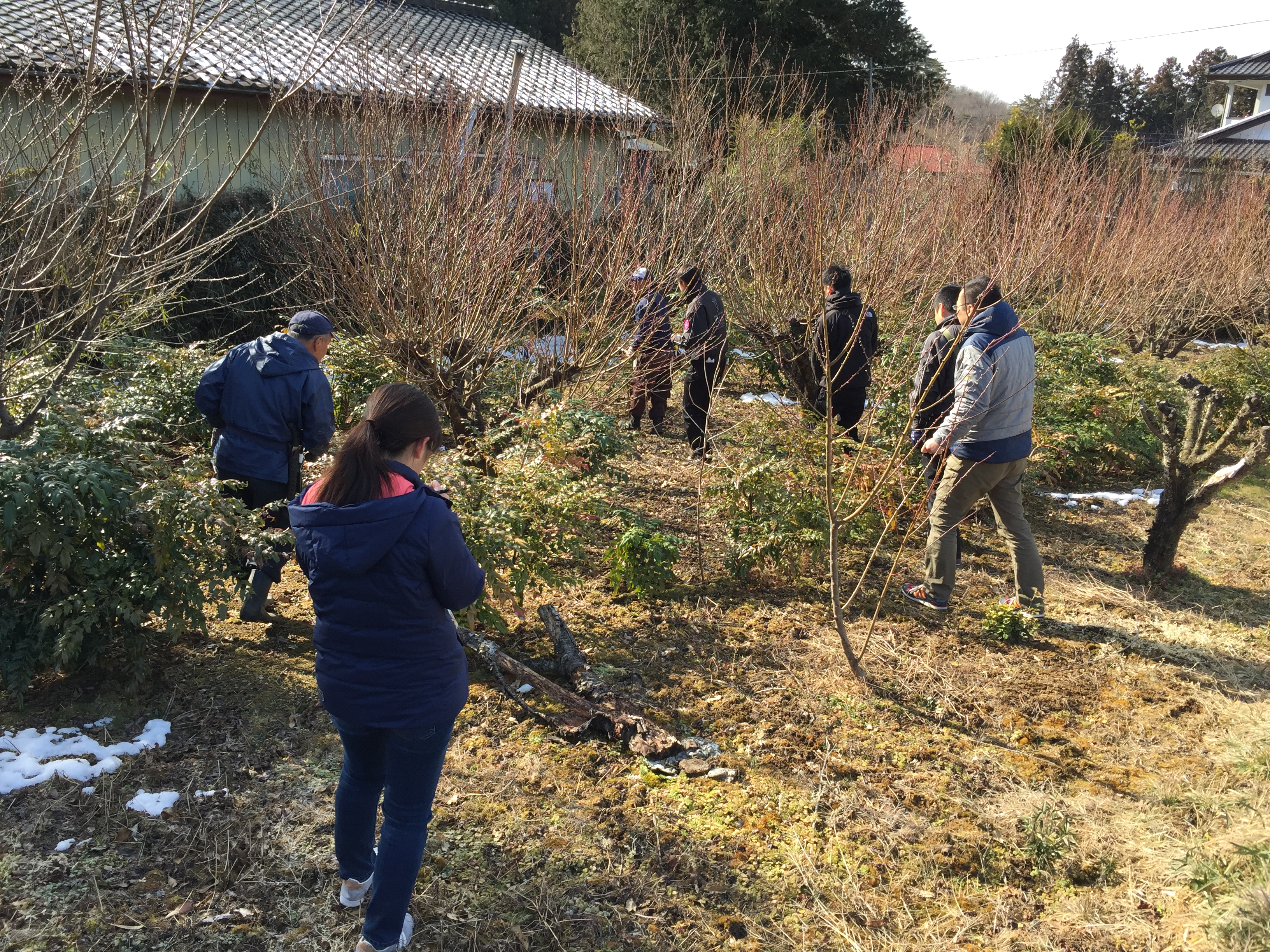 週末に枝ものを出荷している栃木県の笹沼さんとバラのローテローゼの第一人者である斉藤さんのハウスへ行ってきました! 今日は笹沼さんをご紹介♪ 草花、枝ものが大好きな私にとってとても楽しみにしていた産地さんです!枝ものって季節感が一番ある品目だと思うんです。「その季節にしかない、その季節だからこそ綺麗!」枝ものコーナーは自然の縮図を見ているようだなぁといつも感じます。 さて、かれこれ枝ものを出荷して40年の笹沼さん、とても気さくな方!今回は枝を切って出荷するまでの流れを見せていただきました。 んじゃ、まずはこれから出荷のピークを迎える桃の畑へ! IMG_0493.JPG 約6ヘクタールという誇大な広さ!もちろん、車で移動。 ここには樹齢20年の木で、切るときには1本全部切り落とします。使うのはノコギリとなた。 この作業を体験させてくれました!太い枝切ってみなって言われ挑戦するも、なかなかきれん。 IMG_0503.JPG 笹沼さんは1枝3秒くらいで切り落としていきます。職人技です!笹沼さんは1本の木を5分かからず丸裸にしてしまいました。はえぇぇぇぇ! IMG_0496.JPG ちなみに、お父さんは片刃のなたを使って、息子さんは両刃のなたを使っているので、お二方の切り方は全然違う。 IMG_0495.JPG そのなたを使って蕾のついない小枝を切り落とし、約1m20cmの長さにこの場でさくさく揃えていきます。長さの目安はご自分の体。 ちなみに桃(新矢口)は枝を切り落としてから次に出荷できるまで2年待ちます。やはり、1年じゃ蕾の付きや枝ぶりが良くないということです。3年たっちゃうとごつごつ見栄えがよくないのだとか。 お父さんが栽培を始めた40年前に植えた桃の木も見せてくれました。 IMG_0510.JPG 一目で全然違うのがわかりました。おおきい。この木とともに40年暮らしてきたんですね。 桃以外にも今出荷がピークの雪柳やハクレン、それ以外に彼岸桜や吉野桜、サンシュ、田無、コウジンバイ、カキツ、石化柳、ドラゴン柳、サラサボケ、キバデマリ・・・・とかなりの木を見せていただきました。年間を通して約50~60品種出荷しているというのだから、すごい。ぶっちゃけ、花も葉もついていない木は説明されるまで何の木か区別はほとんどつきませんでした。 畑で切られた桃たちは、この後作業場で束ねられます。 IMG_0533.JPG しおりをする際、上部はきつく巻きすぎないように指を入れてゆったりとさせています。細かい気遣いにほろり。 IMG_0538.JPG このしおりの作業も体験させてくれました。 IMG_0540.JPG 今は機械ですぱんすぱん束ねられるけど、以前は畳の原料であるイグサを使って束ねていたそうです。今でも、束が太い物や品評会に持っていくものなどはイグサを使っていらっしゃいます。そのイグサの使い方も教えてくれました。くるくるちねるだけで固定されるというのですが、これがまったくできん。結局あきらめて機械で束ねました。 そして束ねられた桃たちはハウスへ。色を出すためです。あと、一回ハウスに入れないと蕾がぽろぽろ落ちやすくなってしまうらしい。 このハウスは雪柳。通常は株入れが普通らしいのですが、ここでは切ってから温室へ入れます。夜は12℃、昼間は30~34℃。。。34℃!? IMG_0449.JPG はい、メガネっ子はレンズ真っ白で何も見えませんでした。まるでハワイアンセンターにいる気分でした。 IMG_0452.JPG ハウスの中にはハクレンや雪柳なども。 IMG_0459.JPG 桃は直射日光が当たってしまうと色が薄く水っぽくなるのでハウスの中でさらにカバーで暗室を作りそこに入れられています。桶の水は「みさき」という前処理剤が入れられています。ハウスは温度が高く水が腐りやすいので前処理剤は必須!カビ対策にもなっているそうです。 そして、このハウスにいれ、そのあとに湿度が46%室温25℃に維持されている室(ムロ)に移動し蕾を膨らませます。2,3日してから出荷です!新矢口だと切ってから出荷まで約12日かかるそうです。早生品種だとハウスをとばし、直接ムロへ行くので約半分の約6日間で出荷されるそうです。 切ってから出荷までにこんなに時間がかかっていたとは。 また、桃の花がブルーに変色してしまう現象、ブルーイングについて聞いてみました。原因ははっきりとは分からないけど、枝を短くしてしまうとこの現象が多いようです。太い部分を残して活けていただく方がいいかもとおっしゃっていました。活ける際にお試しいただければと思います♪ 3月の桃の節句に向けてとても忙しい時期にお邪魔させていただき感謝の気持ちでいっぱいです!とても貴重な体験をさせていただきありがとうございました。 IMG_0543.JPG そして改めて思う。 桃の節句にはやっぱり桃でお祝いしなくっちゃ♪