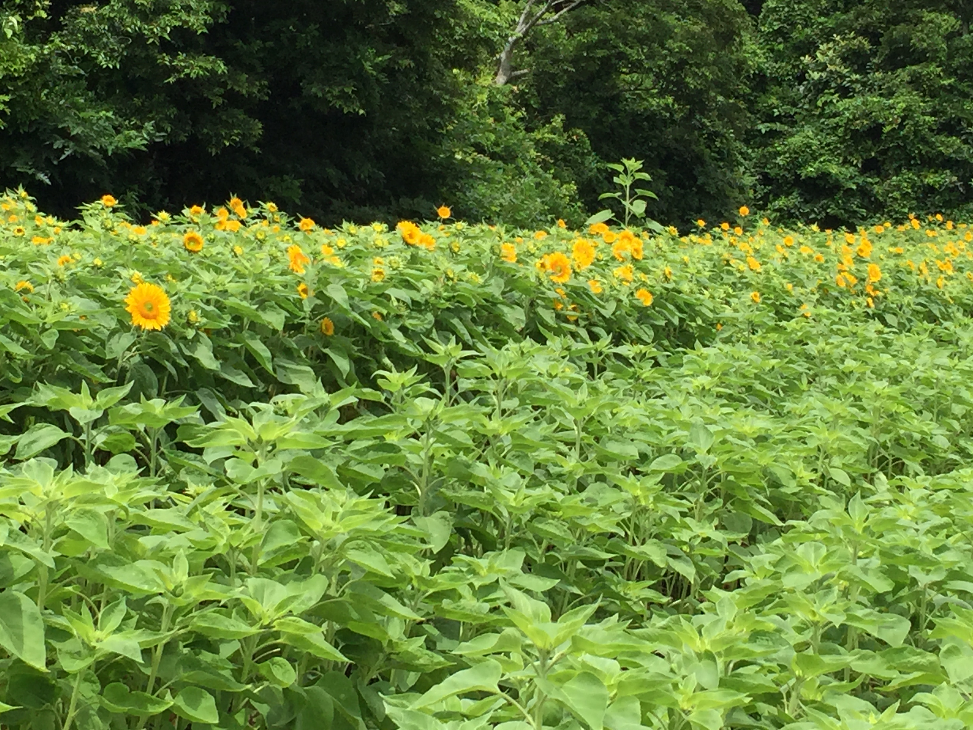 葉が小さく色が薄い・・・普通に考えたらこれって生育不良なんじゃと避けて通るところですが、ヒマワリは違います!栄養を沢山吸ったヒマワリは茎が柔らかく花首が垂れてしまいます。つまり、ヒマワリは肥料が少なければ少ないほどしっかりしたものが育つということです。ヤマキさんのこだわりは花もちと花は上向きってこと!それを実現する最高の場所が西岬なんです。