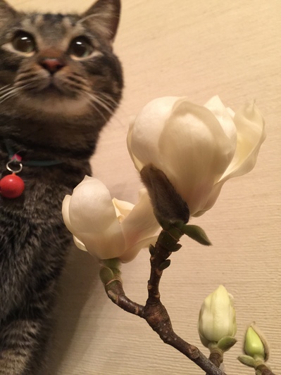 今日は2月22日ということで猫の日~♪ このブログでも我が家のニャンコが花と戯れる姿を何度も登場させちゃってますが、犬猫と花があればそれで十分癒されちゃう私。 我が家にはワンコ1匹とニャンコ2匹がいますが、キジトラ君が植物大好き。私より家にいる時間が長く、家の主気分なので新参者にはニャンコチェックが必ずはいります。(ちなみにワンコと黒猫は花に興味なし。)たいていのお花たちは無事クリアするんだけど、気に入られてしまうと大変。そうなった時の状況がこちら。↓↓↓ IMG_7899.JPG 年末の飾りに買ったレッドウィロー。 飛びつきます。重たそうな体なのに結構高く飛びます。 はい、このレッドウィローは実家行きになりました。 ↓鉢物はたいてい餌食に。しっぽぶんぶん丸~。 IMG_2119.JPG 花も好き。写真を撮っているとすぐ近寄ってくるので可愛い写真がいっぱい撮れる。 IMG_4933.JPG でもあまりにしつこいので追っ払ったら遠くから湿気おびた視線が・・・。 IMG_4937.JPG 花には食いつくことはすくないのですが、ニゲラやラクスパーなどは草っぽいものは要注意。 IMG_8582.JPG おとなしく恒例のお花チェックしているなと思った次の瞬間! IMG_8578.JPG こうなったお花たちは私の留守中は新聞に巻かれてしまいます。 お花はもはや遊び道具なのかもしれません・・・。 IMG_6209.JPG 花瓶を倒されることもしばしばあるので、お花を買って帰るときは猫が気に入るようなものはなるべく避けざるを得ない。それでも一目ぼれした花は買っちゃうんだけど♪ IMG_8256.JPG このお花大好きなキジトラ君、実は大田市場生まれ。東日本大地震の直後に産まれたてを見つけてすぐにママと子供たちを我が家で保護しました。それが私とニャンコの出会い。そして昨年の桜の季節のころ、黒猫君がおひざに乗ってきたのでそのままおうちへGO。 同僚や先輩、そして市場内のお友達やお客様など、たくさんの方のご協力もあって、家族ができたニャンコ達もいますが、市場にはおうちのない子がまだまだみかけます。寒い中頑張って生きているあの子たちをうちに迎えたくても、うちももうキャパいっぱいでこれ以上はどうにもできず何もしてあげられないのがとてもつらい。せめて、今抱えている子たちが幸せな一生を送れるように、頑張って稼ぎたいなと思ってます! と、いうことで、ワンニャんが自分より大事な私が書くこのブログはこれからもワンニャんに占領されていくことでしょう。そんなこのブログにこれからもお付き合いいただければ幸いです♪ これからもよろしくにゃ! IMG_1878.JPG