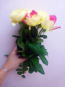 2019年7月17日(水) 産地滋賀県 品目バラ 出荷者ローズファームケイジ 品種風月 ピンク色のバラ「友禅」の枝変りだそうです。 黄色の花にさすピンク! これは咲くのが楽しみな薔薇ですね!! 【バラ科 バラ属】 Tweet